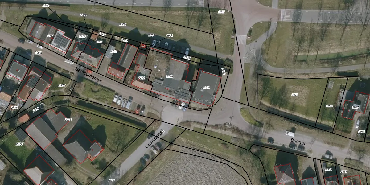 Het perceel waarop Berltsumerdyk 4 staat heeft een oppervlakte van 614 m². Dit is een groot perceel. De perceeloppervlakte wordt geregistreerd door het Kadaster. Gedetailleerde informatie over de maten van dit perceel kunt u vinden in het rapport Kadastrale kaart met maatvoering van Berltsumerdyk 4.