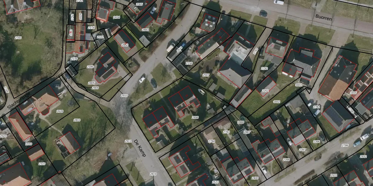 Het perceel waarop De Kamp 16 staat heeft een oppervlakte van 1090 m². Dit is een zeer groot perceel. De perceeloppervlakte wordt geregistreerd door het Kadaster. Gedetailleerde informatie over de maten van dit perceel kunt u vinden in het rapport Kadastrale kaart met maatvoering van De Kamp 16.