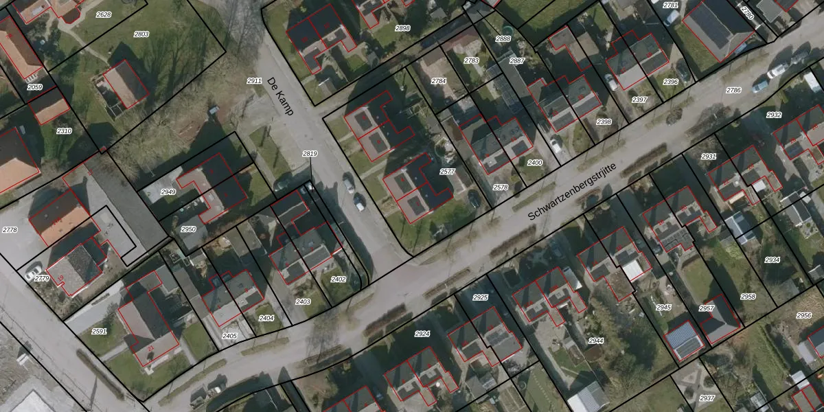 Het perceel waarop De Kamp 2 staat heeft een oppervlakte van 947 m². Dit is een groot perceel. De perceeloppervlakte wordt geregistreerd door het Kadaster. Gedetailleerde informatie over de maten van dit perceel kunt u vinden in het rapport Kadastrale kaart met maatvoering van De Kamp 2.