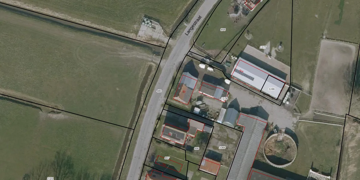 Het perceel waarop Langestraat 82 staat heeft een oppervlakte van 9589 m². Dit is een zeer groot perceel. De perceeloppervlakte wordt geregistreerd door het Kadaster. Gedetailleerde informatie over de maten van dit perceel kunt u vinden in het rapport Kadastrale kaart met maatvoering van Langestraat 82.