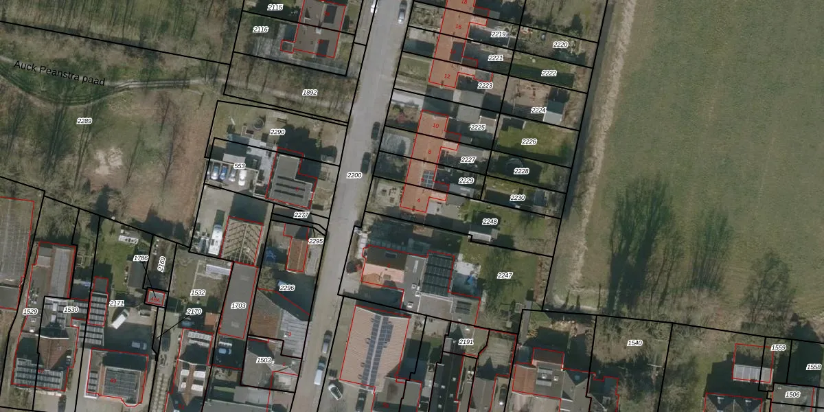 Gebruik de zoekbalk of klik op een perceel voor informatie over de adressen binnen dit perceel.