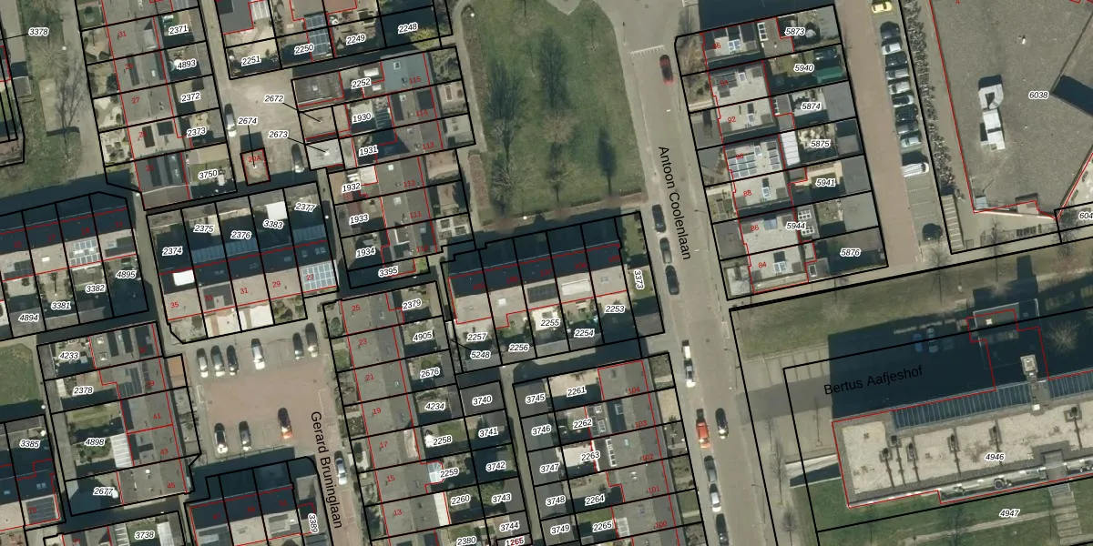 Antoon Coolenlaan 107 is gelegen op kadastraal perceel BDL01G2255. Deze kadastrale aanduiding is uniek en wordt gebruikt door het Kadaster om eigendomsrechten en andere zakelijke rechten vast te leggen. Het perceel maakt onderdeel uit van de kadastrale gemeente Bladel.