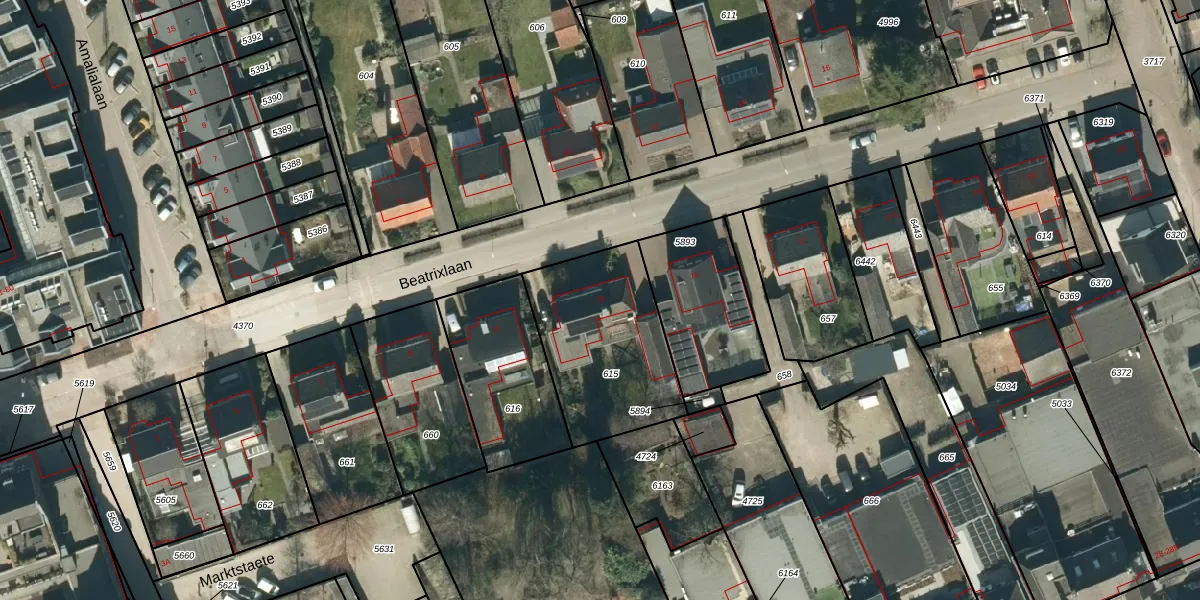 Het perceel waarop Beatrixlaan 13 staat heeft een oppervlakte van 605 m². Dit is een groot perceel. De perceeloppervlakte wordt geregistreerd door het Kadaster. Gedetailleerde informatie over de maten van dit perceel kunt u vinden in het rapport Kadastrale kaart met maatvoering van Beatrixlaan 13.