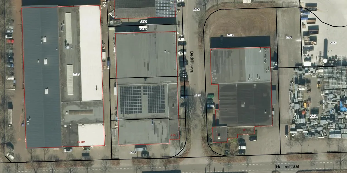 Bedrijfsweg 2 is gelegen op kadastraal perceel BDL01D2985. Deze kadastrale aanduiding is uniek en wordt gebruikt door het Kadaster om eigendomsrechten en andere zakelijke rechten vast te leggen. Het perceel maakt onderdeel uit van de kadastrale gemeente Bladel.