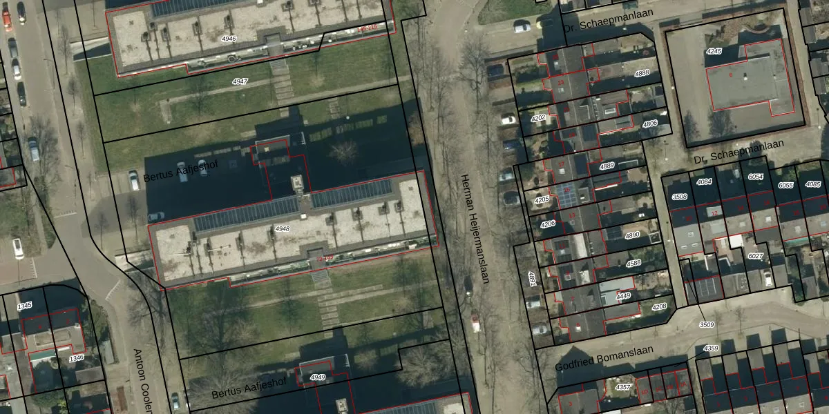 Het perceel waarop Bertus Aafjeshof 109 staat heeft een oppervlakte van 3819 m². Dit is een zeer groot perceel. De perceeloppervlakte wordt geregistreerd door het Kadaster. Gedetailleerde informatie over de maten van dit perceel kunt u vinden in het rapport Kadastrale kaart met maatvoering van Bertus Aafjeshof 109.