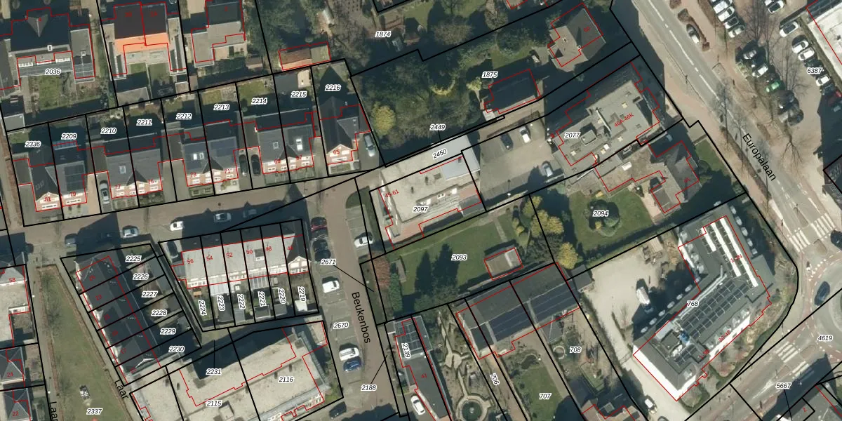 Het perceel waarop Beukenbos 61 staat heeft een oppervlakte van 375 m². Dit is een groot perceel. De perceeloppervlakte wordt geregistreerd door het Kadaster. Gedetailleerde informatie over de maten van dit perceel kunt u vinden in het rapport Kadastrale kaart met maatvoering van Beukenbos 61.