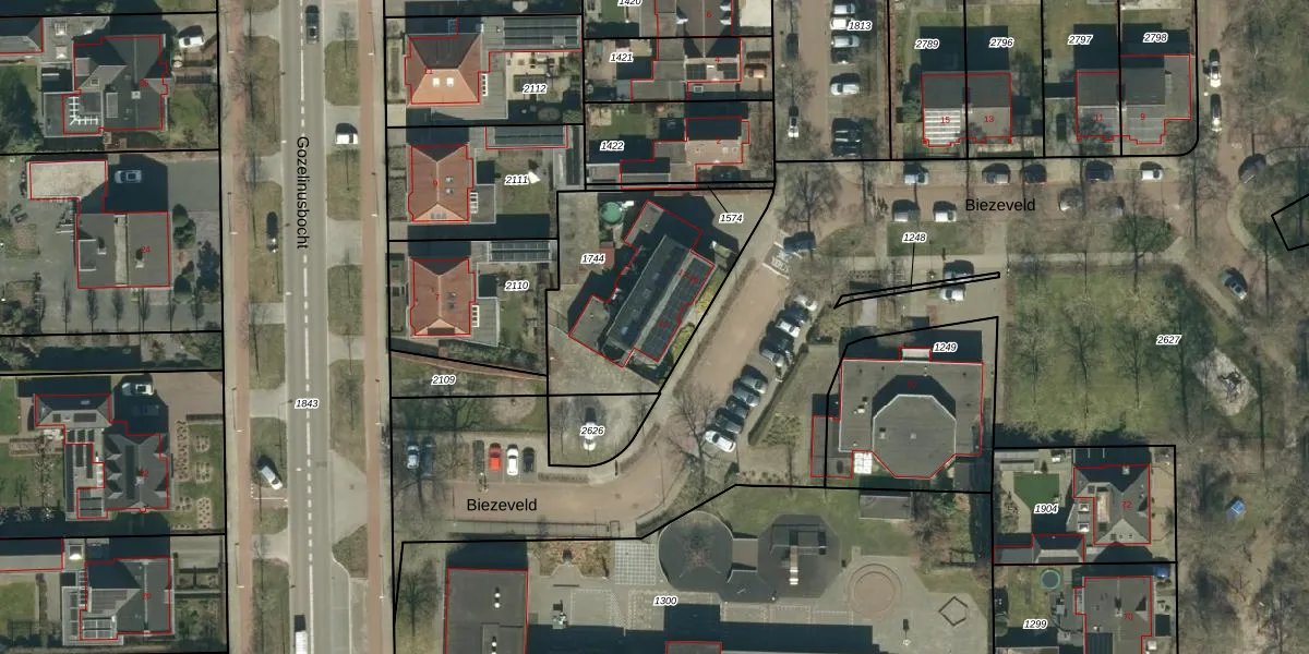 Biezeveld 21 is gelegen op kadastraal perceel BDL01H1744. Deze kadastrale aanduiding is uniek en wordt gebruikt door het Kadaster om eigendomsrechten en andere zakelijke rechten vast te leggen. Het perceel maakt onderdeel uit van de kadastrale gemeente Bladel.