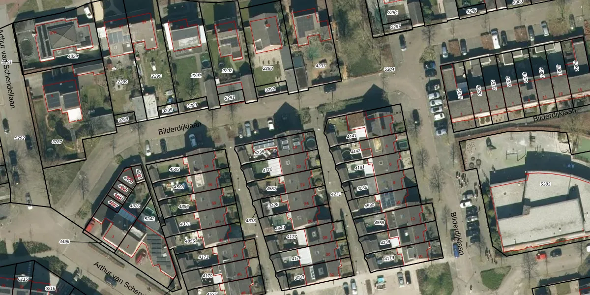 Het perceel waarop Bilderdijklaan 18 staat heeft een oppervlakte van 175 m². Dit is een middelgroot perceel. De perceeloppervlakte wordt geregistreerd door het Kadaster. Gedetailleerde informatie over de maten van dit perceel kunt u vinden in het rapport Kadastrale kaart met maatvoering van Bilderdijklaan 18.