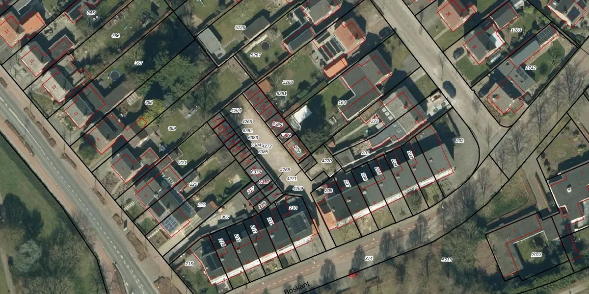 Het perceel waarop Boskant 13-T staat heeft een oppervlakte van 49 m². Dit is een klein perceel. De perceeloppervlakte wordt geregistreerd door het Kadaster. Gedetailleerde informatie over de maten van dit perceel kunt u vinden in het rapport Kadastrale kaart met maatvoering van Boskant 13-T.
