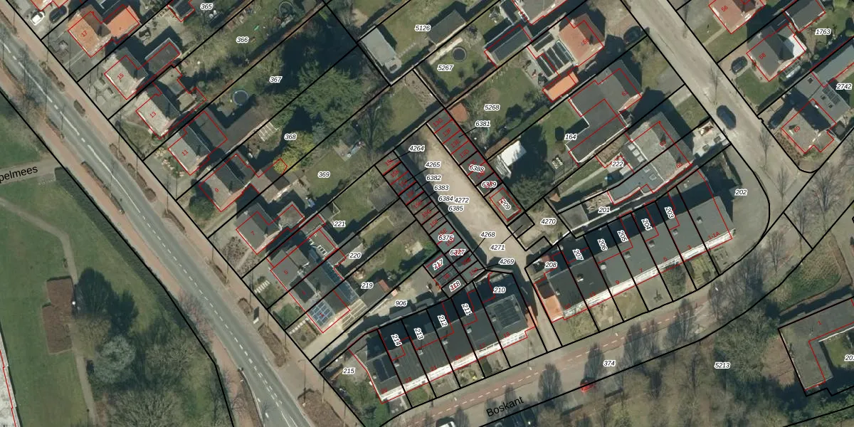 Het perceel waarop Boskant 15-G staat heeft een oppervlakte van 16 m². Dit is een klein perceel. De perceeloppervlakte wordt geregistreerd door het Kadaster. Gedetailleerde informatie over de maten van dit perceel kunt u vinden in het rapport Kadastrale kaart met maatvoering van Boskant 15-G.