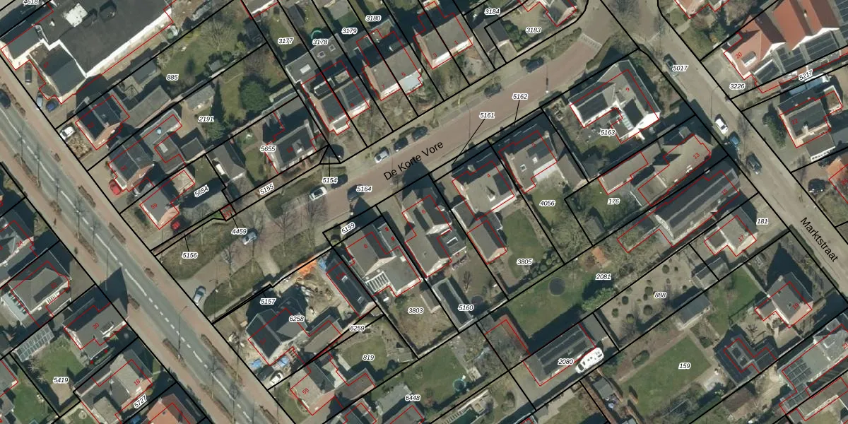 Het perceel waarop De Korte Vore 6 staat heeft een oppervlakte van 511 m². Dit is een groot perceel. De perceeloppervlakte wordt geregistreerd door het Kadaster. Gedetailleerde informatie over de maten van dit perceel kunt u vinden in het rapport Kadastrale kaart met maatvoering van De Korte Vore 6.