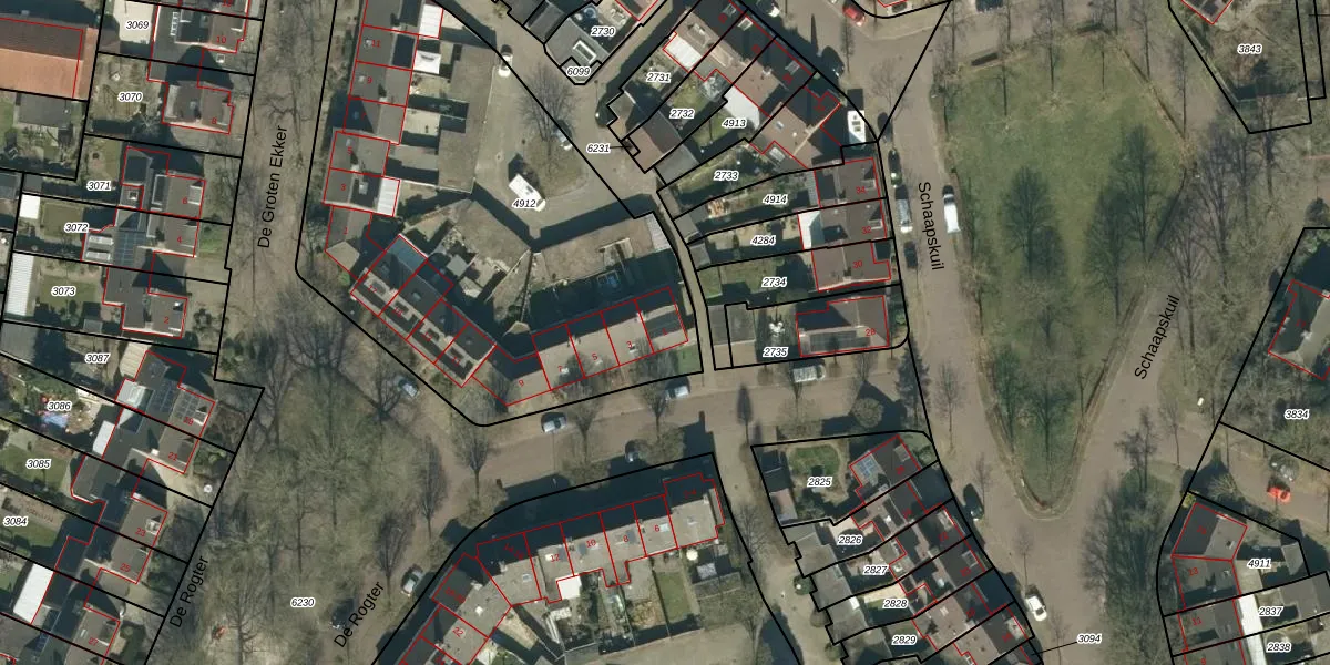 Het perceel waarop De Rogter 1 staat heeft een oppervlakte van 2546 m². Dit is een zeer groot perceel. De perceeloppervlakte wordt geregistreerd door het Kadaster. Gedetailleerde informatie over de maten van dit perceel kunt u vinden in het rapport Kadastrale kaart met maatvoering van De Rogter 1.