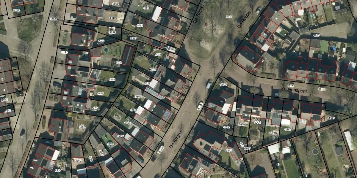 Het perceel waarop De Rogter 33 staat heeft een oppervlakte van 319 m². Dit is een groot perceel. De perceeloppervlakte wordt geregistreerd door het Kadaster. Gedetailleerde informatie over de maten van dit perceel kunt u vinden in het rapport Kadastrale kaart met maatvoering van De Rogter 33.
