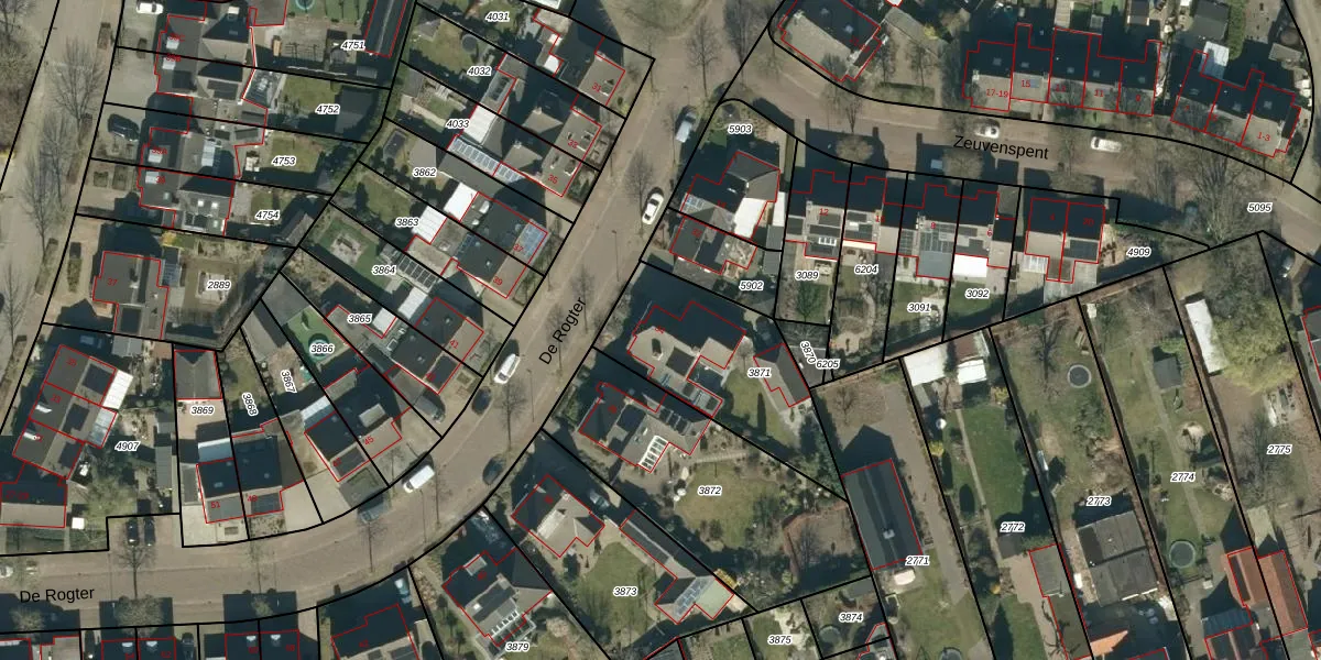 Het perceel waarop De Rogter 34 staat heeft een oppervlakte van 575 m². Dit is een groot perceel. De perceeloppervlakte wordt geregistreerd door het Kadaster. Gedetailleerde informatie over de maten van dit perceel kunt u vinden in het rapport Kadastrale kaart met maatvoering van De Rogter 34.