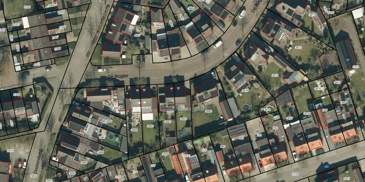 Gebruik de zoekbalk of klik op een perceel voor informatie over de adressen binnen dit perceel.