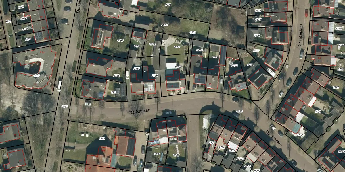 De Smelen 6 is gelegen op kadastraal perceel BDL01G2715. Deze kadastrale aanduiding is uniek en wordt gebruikt door het Kadaster om eigendomsrechten en andere zakelijke rechten vast te leggen. Het perceel maakt onderdeel uit van de kadastrale gemeente Bladel.