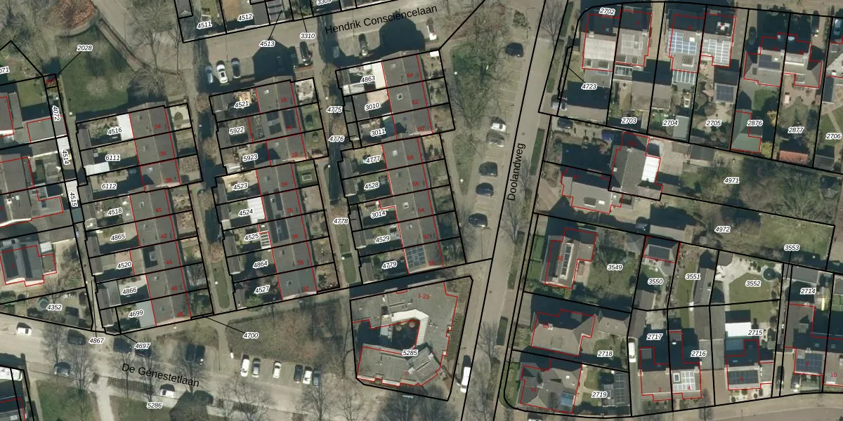 Gebruik de zoekbalk of klik op een perceel voor informatie over de adressen binnen dit perceel.