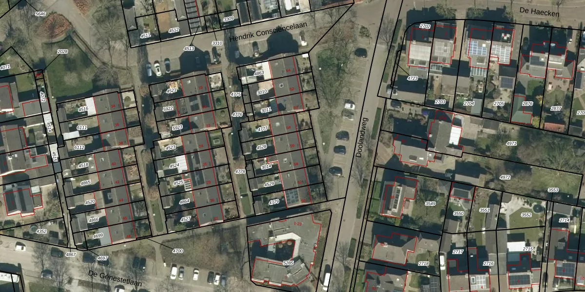 Gebruik de zoekbalk of klik op een perceel voor informatie over de adressen binnen dit perceel.