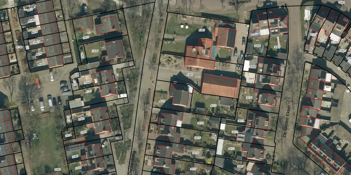 Gebruik de zoekbalk of klik op een perceel voor informatie over de adressen binnen dit perceel.