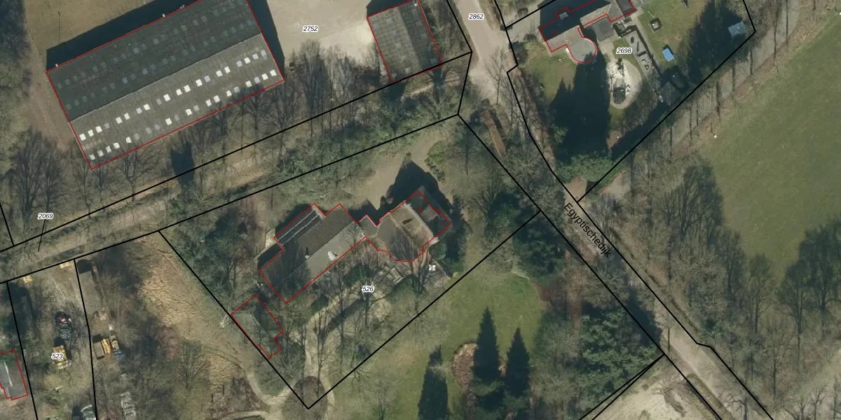 Het perceel waarop Egyptischedijk 6 staat heeft een oppervlakte van 3271 m². Dit is een zeer groot perceel. De perceeloppervlakte wordt geregistreerd door het Kadaster. Gedetailleerde informatie over de maten van dit perceel kunt u vinden in het rapport Kadastrale kaart met maatvoering van Egyptischedijk 6.