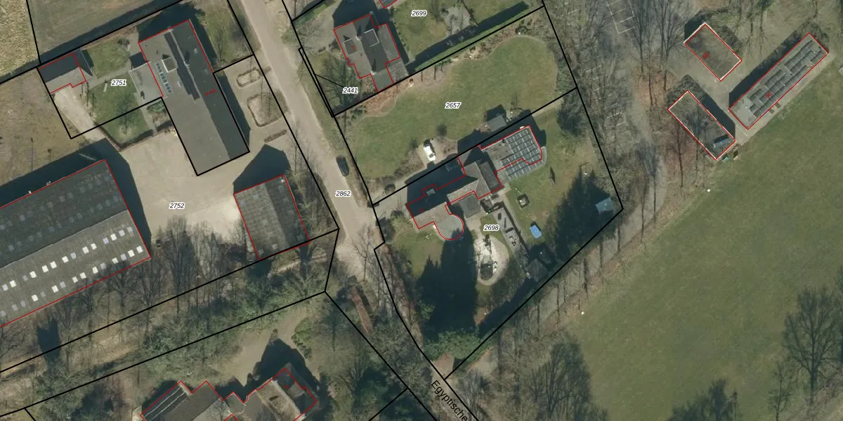 Het perceel waarop Egyptischedijk 9 staat heeft een oppervlakte van 2148 m². Dit is een zeer groot perceel. De perceeloppervlakte wordt geregistreerd door het Kadaster. Gedetailleerde informatie over de maten van dit perceel kunt u vinden in het rapport Kadastrale kaart met maatvoering van Egyptischedijk 9.