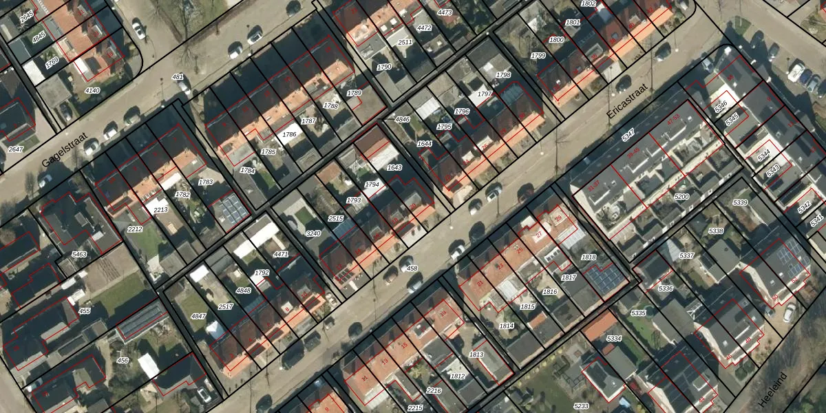 Gebruik de zoekbalk of klik op een perceel voor informatie over de adressen binnen dit perceel.