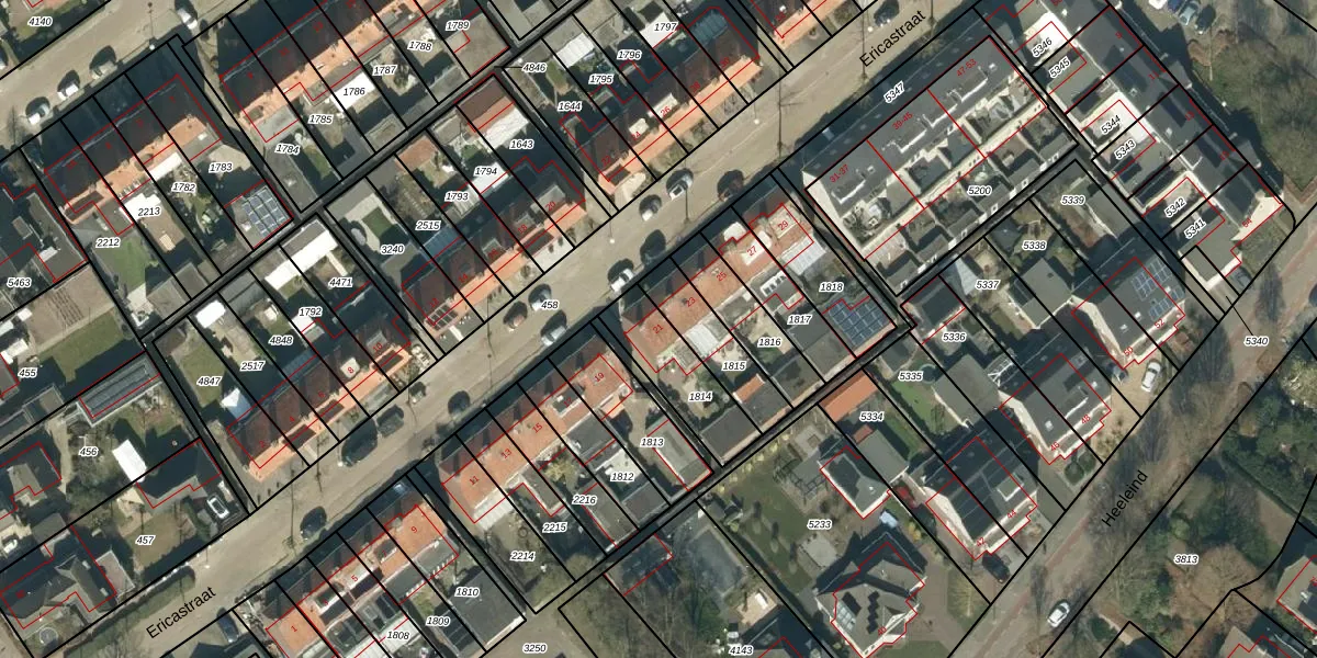Ericastraat 21 is gelegen op kadastraal perceel BDL01G1814. Deze kadastrale aanduiding is uniek en wordt gebruikt door het Kadaster om eigendomsrechten en andere zakelijke rechten vast te leggen. Het perceel maakt onderdeel uit van de kadastrale gemeente Bladel.