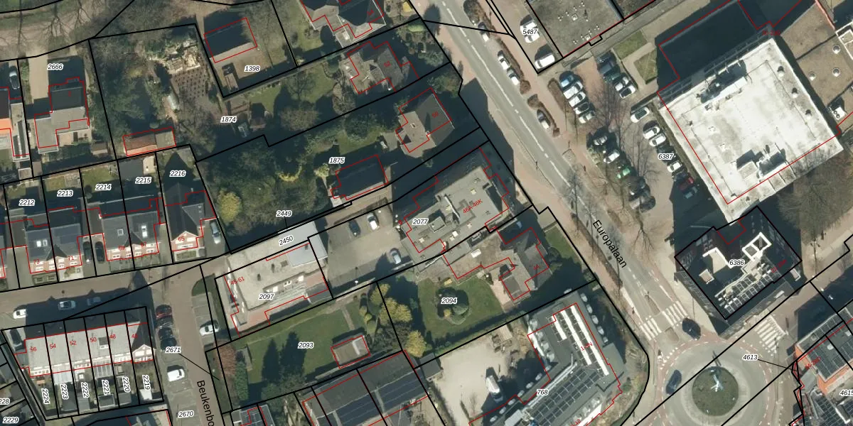 Het perceel waarop Europalaan 46-K staat heeft een oppervlakte van 827 m². Dit is een groot perceel. De perceeloppervlakte wordt geregistreerd door het Kadaster. Gedetailleerde informatie over de maten van dit perceel kunt u vinden in het rapport Kadastrale kaart met maatvoering van Europalaan 46-K.