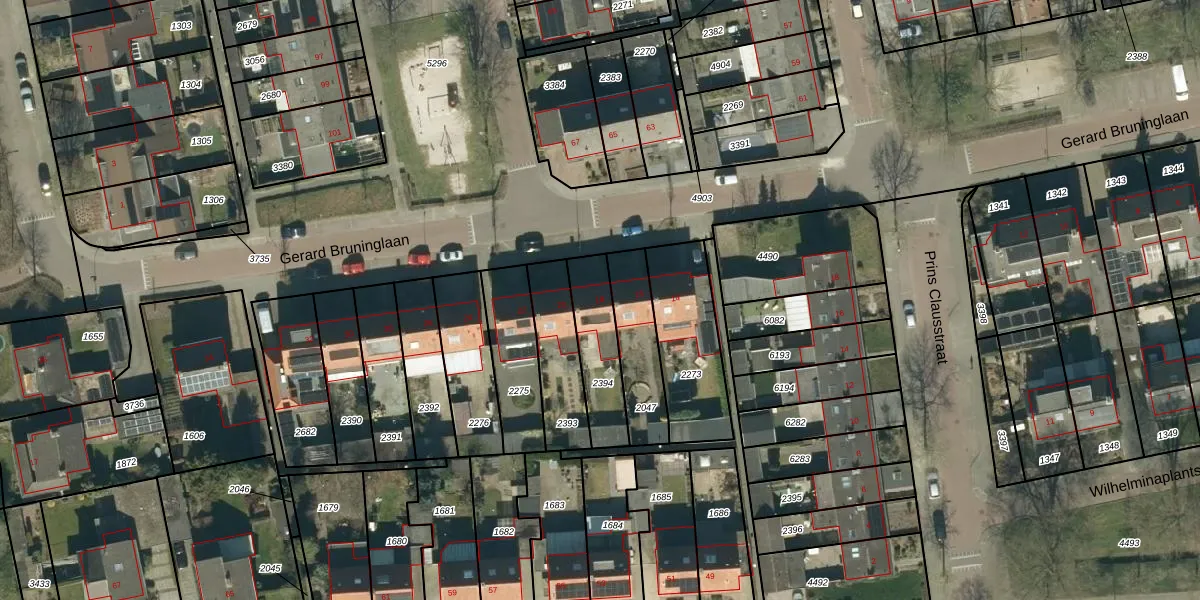 Het perceel waarop Gerard Bruninglaan 18 staat heeft een oppervlakte van 213 m². Dit is een middelgroot perceel. De perceeloppervlakte wordt geregistreerd door het Kadaster. Gedetailleerde informatie over de maten van dit perceel kunt u vinden in het rapport Kadastrale kaart met maatvoering van Gerard Bruninglaan 18.