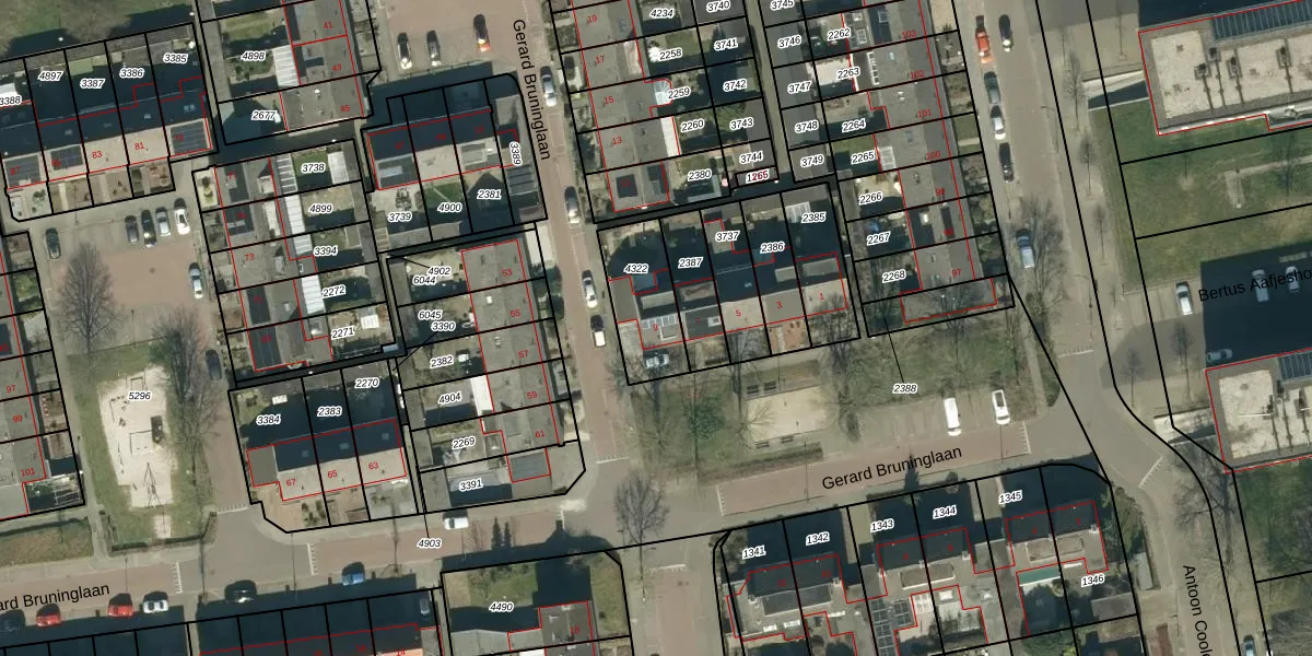 Gerard Bruninglaan 9 is gelegen op kadastraal perceel BDL01G4322. Deze kadastrale aanduiding is uniek en wordt gebruikt door het Kadaster om eigendomsrechten en andere zakelijke rechten vast te leggen. Het perceel maakt onderdeel uit van de kadastrale gemeente Bladel.