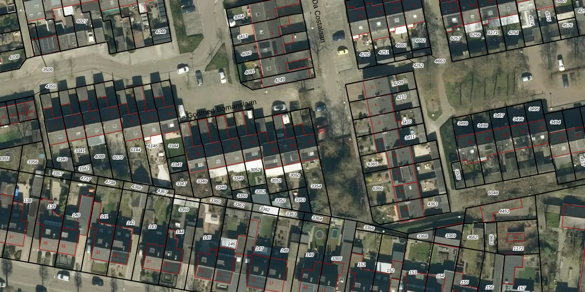 Het perceel waarop Godfried Bomanslaan 25 staat heeft een oppervlakte van 166 m². Dit is een middelgroot perceel. De perceeloppervlakte wordt geregistreerd door het Kadaster. Gedetailleerde informatie over de maten van dit perceel kunt u vinden in het rapport Kadastrale kaart met maatvoering van Godfried Bomanslaan 25.
