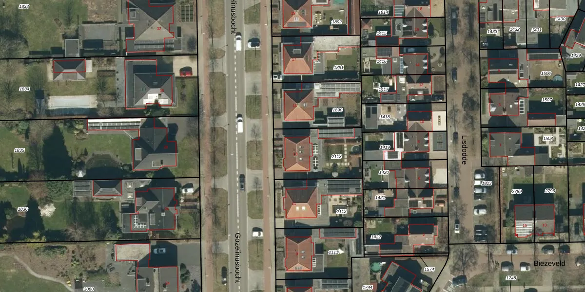 Gebruik de zoekbalk of klik op een perceel voor informatie over de adressen binnen dit perceel.