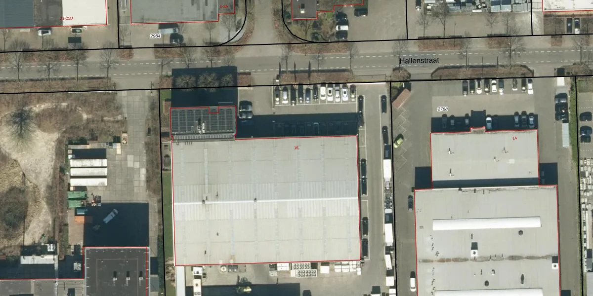 Het perceel waarop Hallenstraat 16 staat heeft een oppervlakte van 8890 m². Dit is een zeer groot perceel. De perceeloppervlakte wordt geregistreerd door het Kadaster. Gedetailleerde informatie over de maten van dit perceel kunt u vinden in het rapport Kadastrale kaart met maatvoering van Hallenstraat 16.