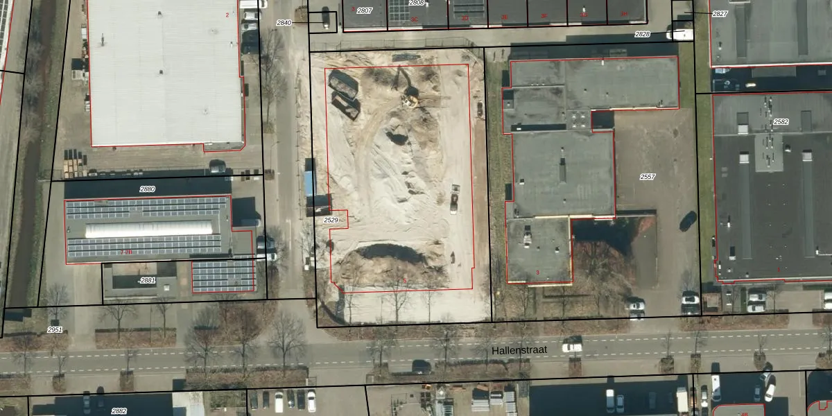 Het perceel waarop Hallenstraat 5-E staat heeft een oppervlakte van 2769 m². Dit is een zeer groot perceel. De perceeloppervlakte wordt geregistreerd door het Kadaster. Gedetailleerde informatie over de maten van dit perceel kunt u vinden in het rapport Kadastrale kaart met maatvoering van Hallenstraat 5-E.