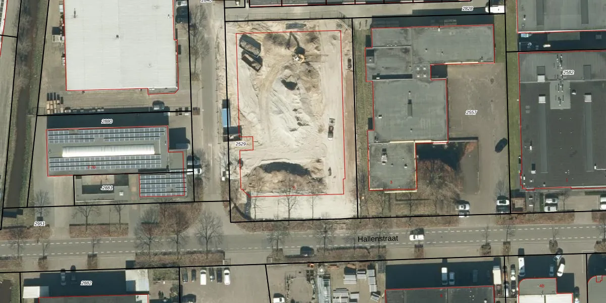 Het perceel waarop Hallenstraat 5-D staat heeft een oppervlakte van 2769 m². Dit is een zeer groot perceel. De perceeloppervlakte wordt geregistreerd door het Kadaster. Gedetailleerde informatie over de maten van dit perceel kunt u vinden in het rapport Kadastrale kaart met maatvoering van Hallenstraat 5-D.