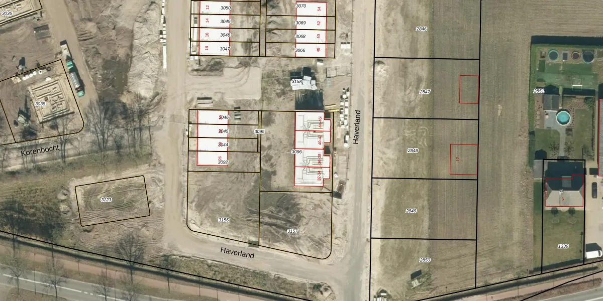 Het perceel waarop Haverland 38 staat heeft een oppervlakte van 640 m². Dit is een groot perceel. De perceeloppervlakte wordt geregistreerd door het Kadaster. Gedetailleerde informatie over de maten van dit perceel kunt u vinden in het rapport Kadastrale kaart met maatvoering van Haverland 38.