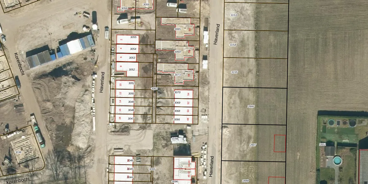 Het perceel waarop Haverland 54 staat heeft een oppervlakte van 156 m². Dit is een middelgroot perceel. De perceeloppervlakte wordt geregistreerd door het Kadaster. Gedetailleerde informatie over de maten van dit perceel kunt u vinden in het rapport Kadastrale kaart met maatvoering van Haverland 54.