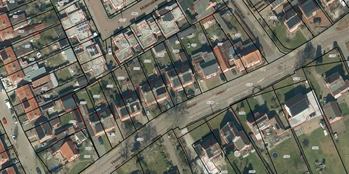 Gebruik de zoekbalk of klik op een perceel voor informatie over de adressen binnen dit perceel.