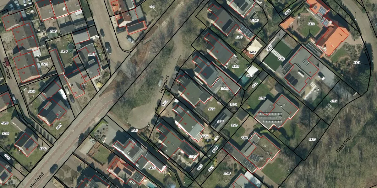 Gebruik de zoekbalk of klik op een perceel voor informatie over de adressen binnen dit perceel.