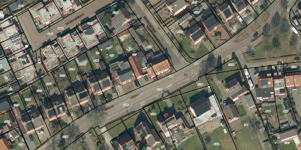 Het perceel waarop Heeleind 24 staat heeft een oppervlakte van 423 m². Dit is een groot perceel. De perceeloppervlakte wordt geregistreerd door het Kadaster. Gedetailleerde informatie over de maten van dit perceel kunt u vinden in het rapport Kadastrale kaart met maatvoering van Heeleind 24.