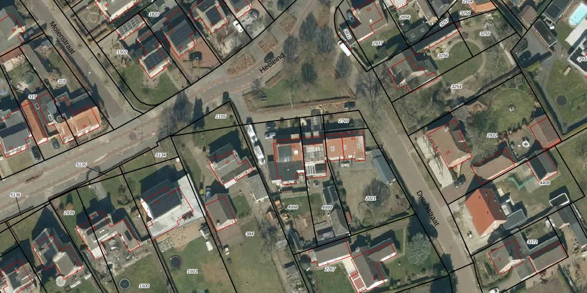 Gebruik de zoekbalk of klik op een perceel voor informatie over de adressen binnen dit perceel.