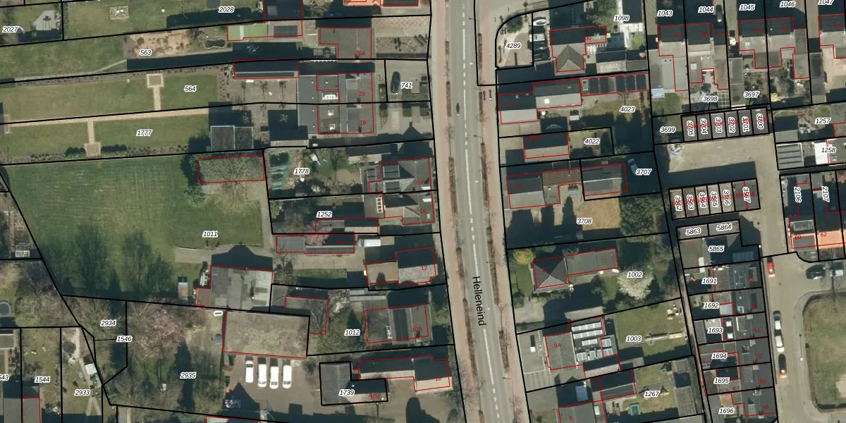 Helleneind 16 is gelegen op kadastraal perceel BDL01H1252. Deze kadastrale aanduiding is uniek en wordt gebruikt door het Kadaster om eigendomsrechten en andere zakelijke rechten vast te leggen. Het perceel maakt onderdeel uit van de kadastrale gemeente Bladel.