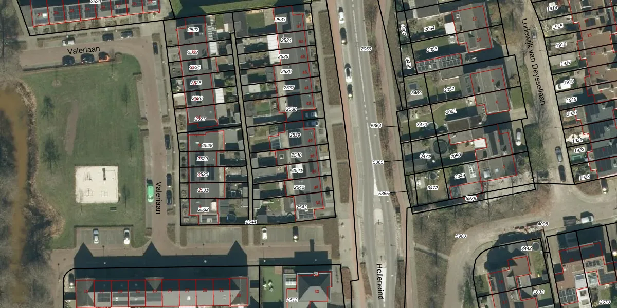 Helleneind 38 is gelegen op kadastraal perceel BDL01H2540. Deze kadastrale aanduiding is uniek en wordt gebruikt door het Kadaster om eigendomsrechten en andere zakelijke rechten vast te leggen. Het perceel maakt onderdeel uit van de kadastrale gemeente Bladel.