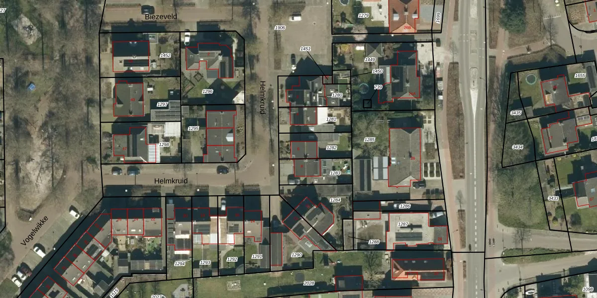 Het perceel waarop Helmkruid 6 staat heeft een oppervlakte van 213 m². Dit is een middelgroot perceel. De perceeloppervlakte wordt geregistreerd door het Kadaster. Gedetailleerde informatie over de maten van dit perceel kunt u vinden in het rapport Kadastrale kaart met maatvoering van Helmkruid 6.