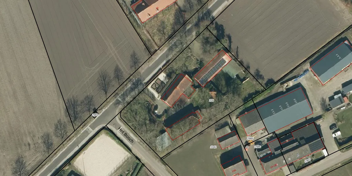 Het perceel waarop Het Bosch 21 staat heeft een oppervlakte van 2900 m². Dit is een zeer groot perceel. De perceeloppervlakte wordt geregistreerd door het Kadaster. Gedetailleerde informatie over de maten van dit perceel kunt u vinden in het rapport Kadastrale kaart met maatvoering van Het Bosch 21.