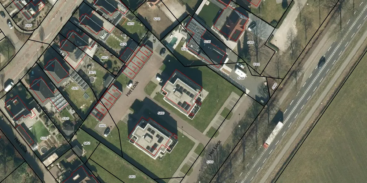 Het perceel waarop Het Look 20 staat heeft een oppervlakte van 3622 m². Dit is een zeer groot perceel. De perceeloppervlakte wordt geregistreerd door het Kadaster. Gedetailleerde informatie over de maten van dit perceel kunt u vinden in het rapport Kadastrale kaart met maatvoering van Het Look 20.