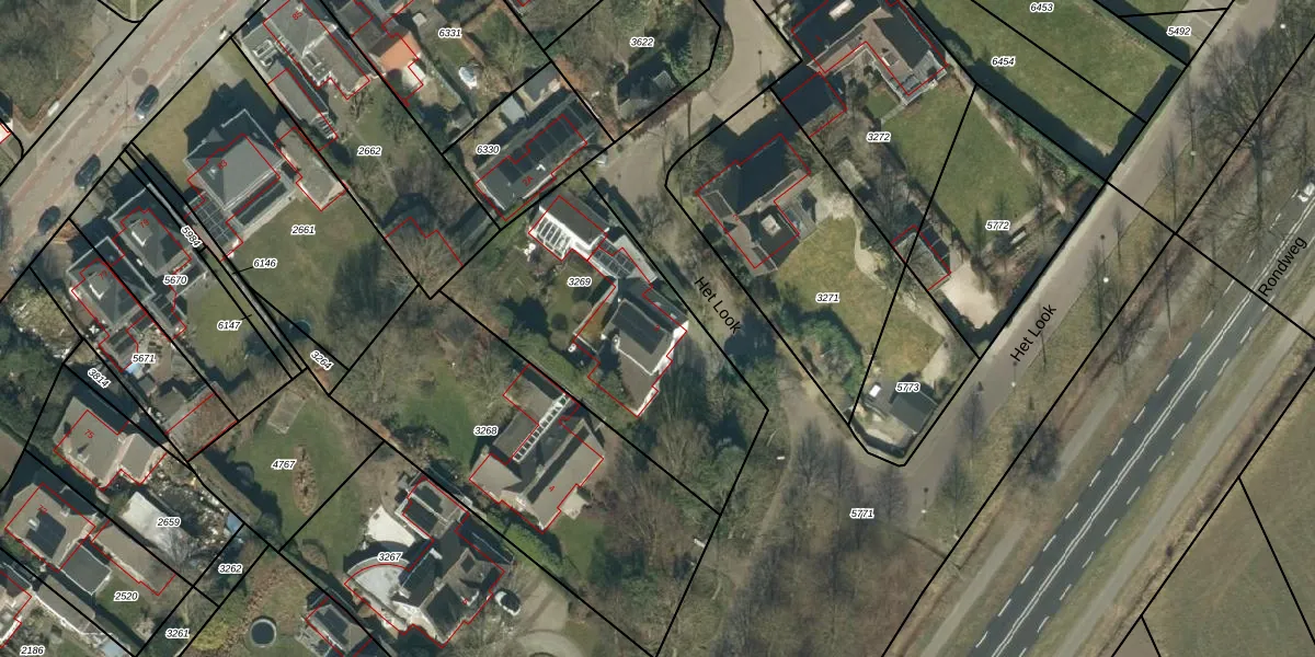 Het perceel waarop Het Look 3 staat heeft een oppervlakte van 1131 m². Dit is een zeer groot perceel. De perceeloppervlakte wordt geregistreerd door het Kadaster. Gedetailleerde informatie over de maten van dit perceel kunt u vinden in het rapport Kadastrale kaart met maatvoering van Het Look 3.