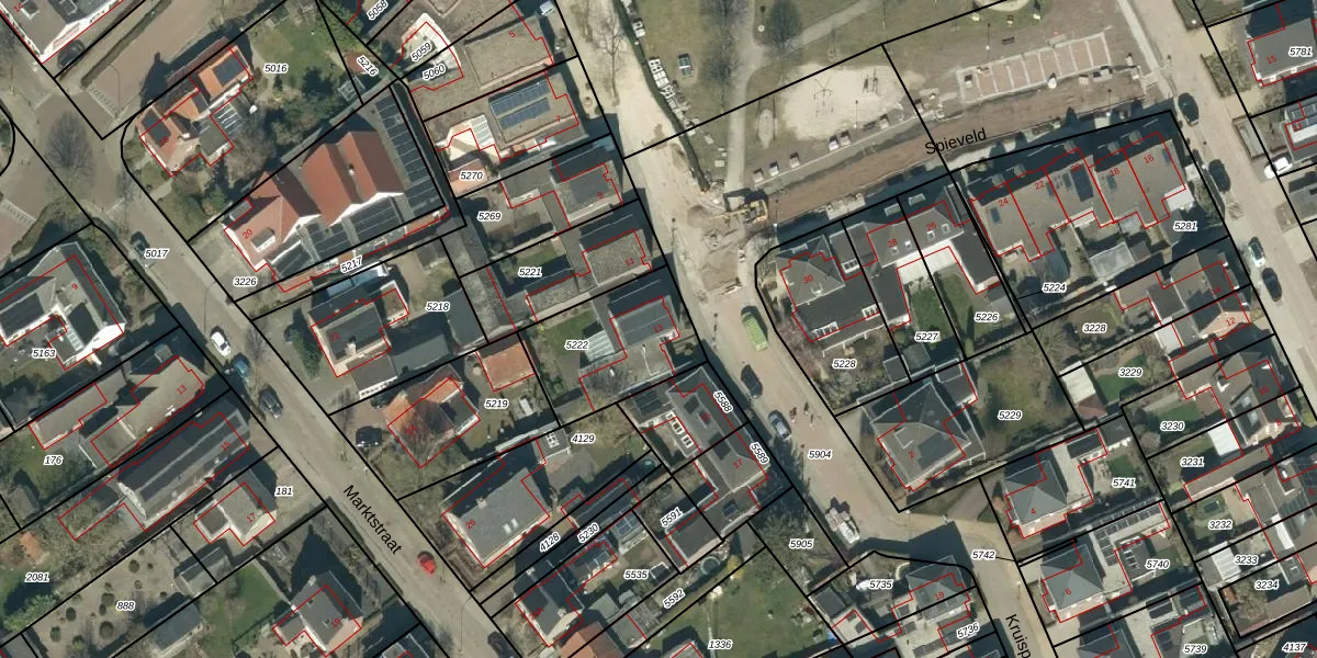 Het adres is gelegen op perceel 5222 in de sectie G en de kadastrale gemeente Bladel. De kadastrale aanduiding is aldus BDL01-G-5222. Het perceel is 397 m² groot. Dat is kleiner dan de gemiddelde perceeloppervlakte in Bladel, dat op 4572,34 m² ligt. Het grootste perceel in de kadastrale gemeente is 1,49 km². Het kleinste perceel heeft een oppervlakte van 0 m². Dit is het enige adres dat aanwezig is op het perceel. De huidige grenzen van het perceel zijn digitaal in de Basisregistratie Kadaster (BRK) geregistreerd op 31-01-2012.