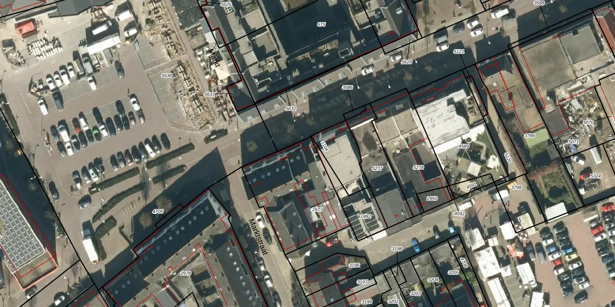 Het perceel waarop Markt 57 staat heeft een oppervlakte van 766 m². Dit is een groot perceel. De perceeloppervlakte wordt geregistreerd door het Kadaster. Gedetailleerde informatie over de maten van dit perceel kunt u vinden in het rapport Kadastrale kaart met maatvoering van Markt 57.