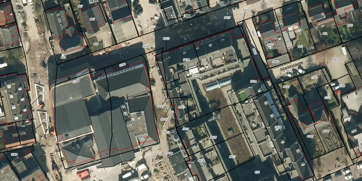 Het perceel waarop Marktstaete 14 staat heeft een oppervlakte van 1567 m². Dit is een zeer groot perceel. De perceeloppervlakte wordt geregistreerd door het Kadaster. Gedetailleerde informatie over de maten van dit perceel kunt u vinden in het rapport Kadastrale kaart met maatvoering van Marktstaete 14.